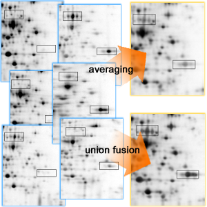Using standard positions and image fusion to create proteome maps from collections of two-dimensional gel electrophoresis images.